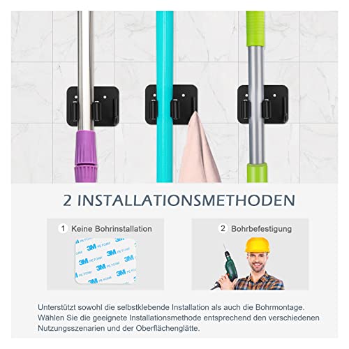✔【Supporto antiscivolo】 Il mocio e il gancio per scopa sono dotati di fessure antiscivolo, caricate a molla e con doppia gomma per garantire che mocio bagnato, manici della scopa, rastrello sporco, mazza da baseball, ombrelli, altri strumenti, non scivolino.