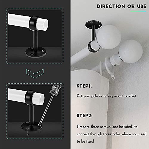 ★Materiale Affidabile☆ La staffa del soffitto dell'asta della tenda è realizzata in materiale di acciaio inossidabile, la parte esposta è spruzzata con vernice nera per prevenire la ruggine, durevole e affidabile da usare, resistente all'usura, può durare a lungo.