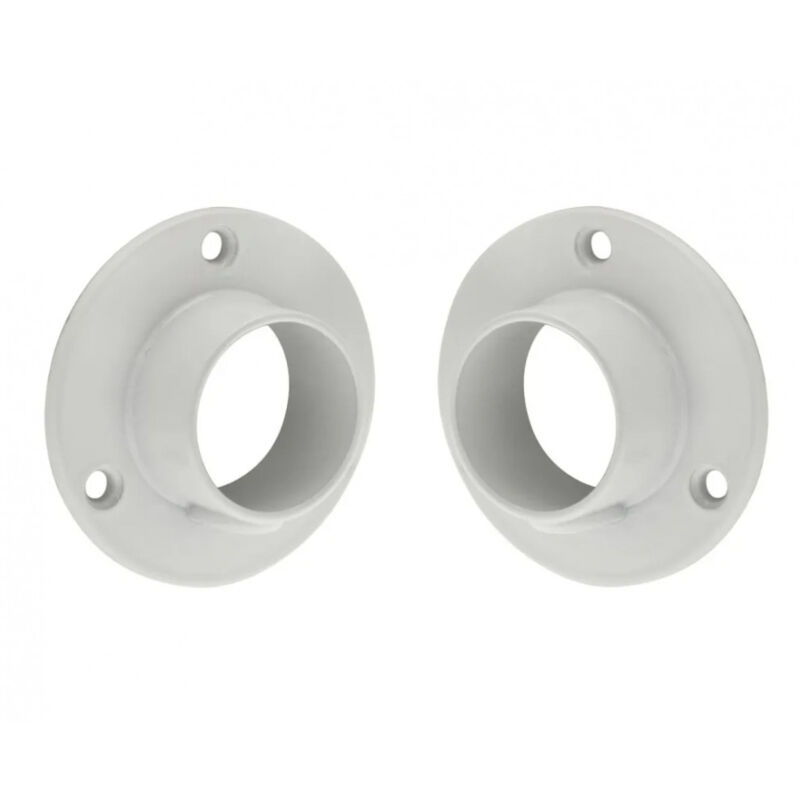 Supporti terminali chiusi per tubo armadio aperto diametro 19, acciaio bianco codice CQ.14006.2 Supporto chiuso per il tubo dell'armadio. Acciaio bianco. Due pezzi. Viti e bulloni inclusi. Per le barre di lunghezza superiore a 1 metro, si consiglia di aggiungere un supporto centrale (rif. INTSUCQ140481).
