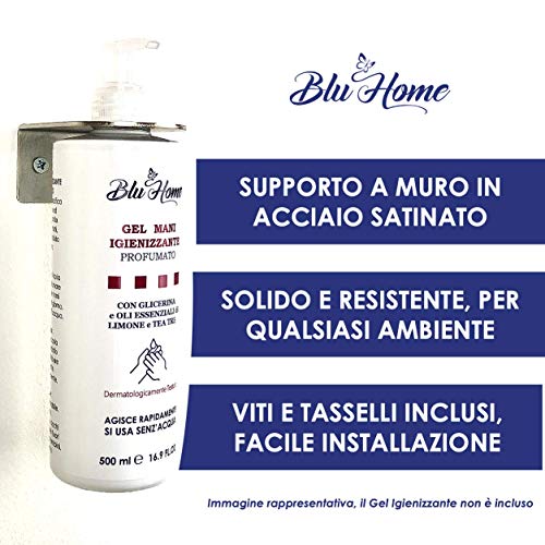 Blu Home SUPPORTO A MURO in ACCIAIO per Flacone da 500 ml Gel Mani Igienizzante (Sospeso)