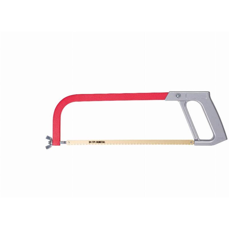 Dettagli: Manico in alluminio pressofuso Tubo rettangolare in acciaio per una maggiore rigidità, verniciato in rosso. Manico in alluminio iniettato grigio. Regolazione della tensione della lama tramite vite a testa zigrinata. Caratteristiche: Lunghezza in mm: 450 Dimensione lama: 300