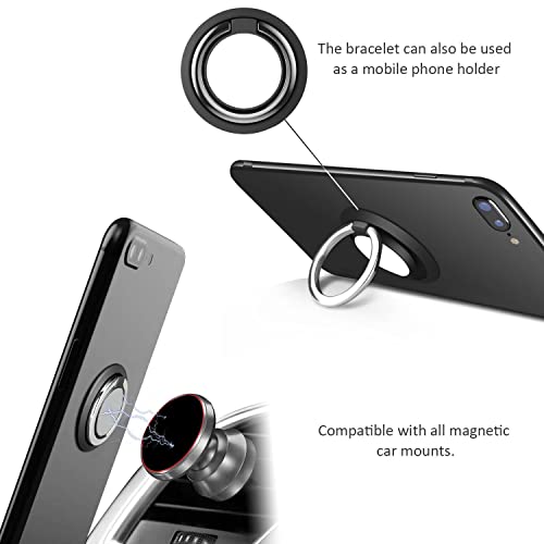 Supporto ad anello per telefono da 2 pezzi, supporto ad anello per telefono girevole regolabile a 360°, supporto per auto disponibile, adatto a tutti gli smartphone (nero argento)