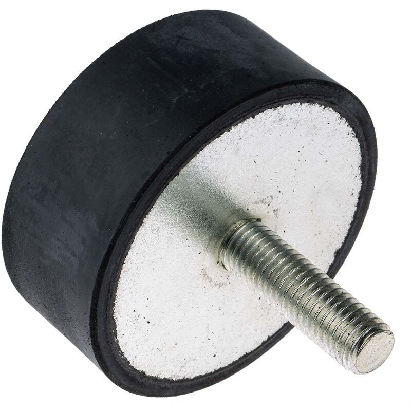 Tipo di lama = Piede buffer maschio Dimensione filettatura = M12 Diametro = 75mm Altezza totale = 30mm Materiale = Gomma naturale Carico di compressione = 534.6kg Temperatura minima d'esercizio = -25°C RS PRO V10