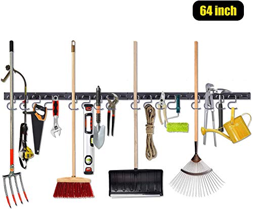 Supporto per attrezzi da giardino, scaffale per attrezzi, organizer per casa e garage, supporto da parete con 16 ganci rimovibili - 64 pollici