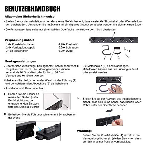Supporto da parete per attrezzi, per garage, basement, workshop, chiusura, ecc.
