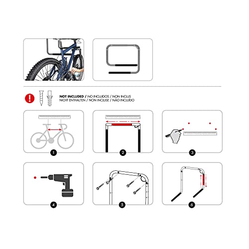 INSTALLAZIONE FACILE: Posiziona il portabiciclette sulla parete grazie al suo sistema di avvitamento. Si consiglia di posizionarlo all'altezza adeguata in base alle proprie esigenze. Aiutati con un livello in modo che sia dritto. Utilizzare viti e tasselli appropriati per la superficie su cui andrete a posizionarlo. Per la manutenzione si consiglia di pulire con un panno umido.