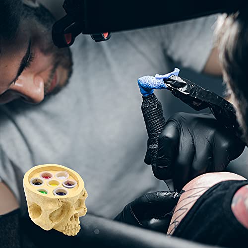 Supporto per calamaio per tatuaggi - SOTICA Supporto per calotta per inchiostro a 7 fori con testa a cranio Supporto per cappuccio per pigmenti in resina dura 3D creativo per forniture di tatuaggi