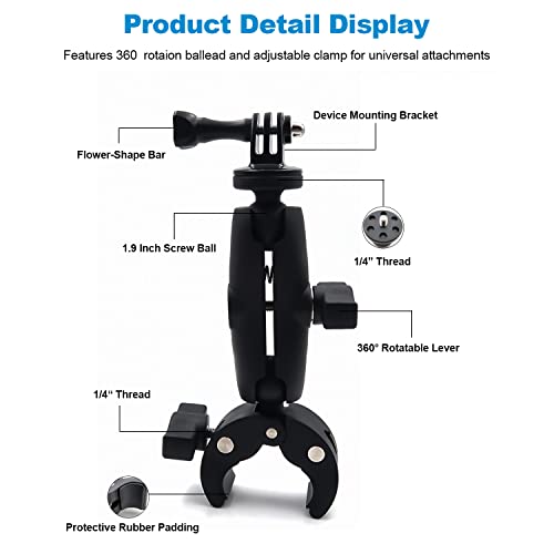 Supporto Camera Moto per GoPro, Supporto Gopro Moto, Supporto Bici per Insta 360 GoPro, 3 in 1 Morsetto Treppiede Alluminio Metallo Supporto Bici con Filettatura da 1/4"-20 per GoPro Nikon Sony