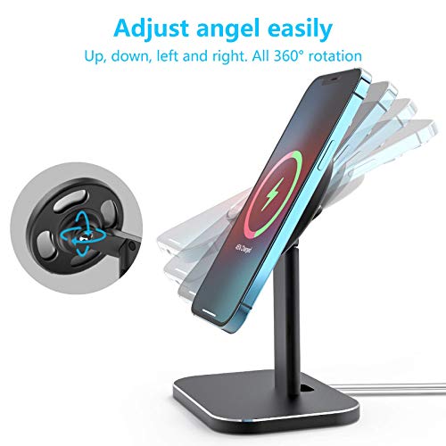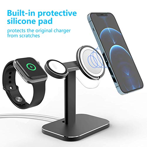Supporto caricatore adatto per magsafe, 2 in 1 supporto per telefono per il desktop in lega di alluminio, Compatibile con il caricatore MagSafe per Apple iWatch/iPhone 12/Mini/Pro/Pro Max.