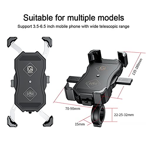 WHCL Supporto per Cellulare Impermeabile, USB Wireless per Moto e Supporto per Caricabatterie per Cellulare QC3.0, Adatto per manubri da 22-32 mm o specchietto retrovisore 12-24V