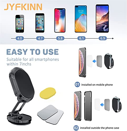 【FACILE REGOLAZIONE DELL'ANGOLO】: JYFKINN Porta Telefono Auto Magnetico ha un doppio strato pieghevole, la base del supporto per telefono per auto magnetico può essere regolata con una rotazione di 360 gradi, 2 parti possono essere regolate dall'estensione pieghevole di 180 gradi del braccio, che consente di vedere una visione più ampia della guida, Porta Cellulare Magnetico veicolare può essere regolato in qualsiasi direzione per ottenere la migliore visuale e creare un'atmosfera confortevole.