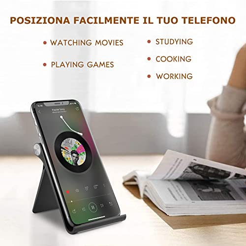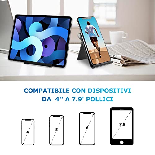 Supporto Cellulare da Tavolo, Porta Tablet Telefono, Regolabile Ultra Sottile Portatile Supporto Cellulare per iPad, Phone e Kindle da 4'' a 7.9'' (Nero)