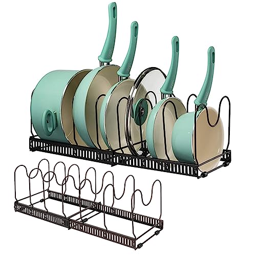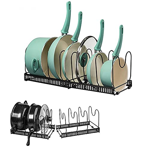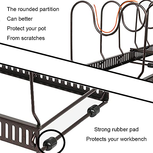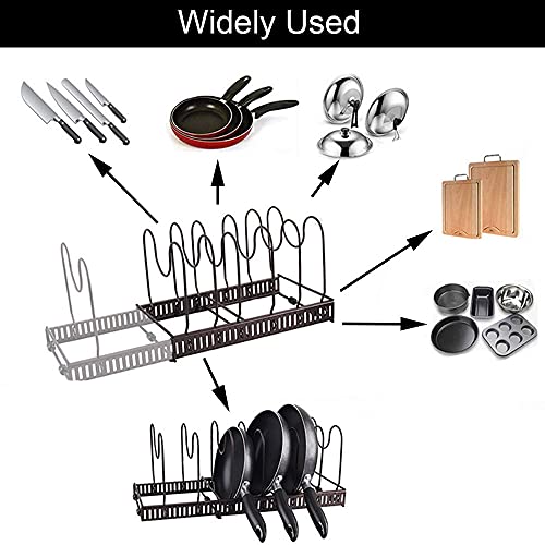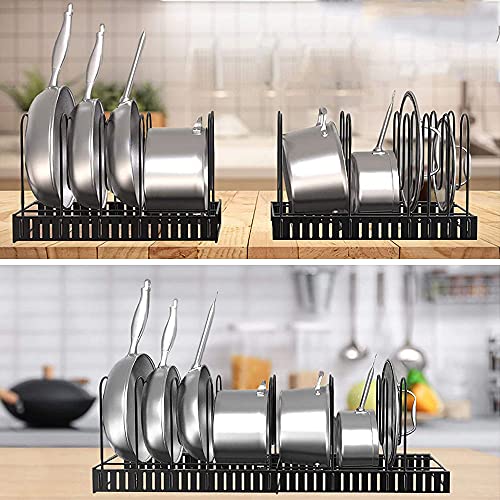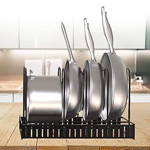 Supporto Coperchio Pentola Regolabile, Supporto Regolabile per Pentole e Padelle, Supporto per Coperchio della Pentola, Organizer per Padelle, con 6 Scomparti Portapentole, per Riporre Cucina(Nero)