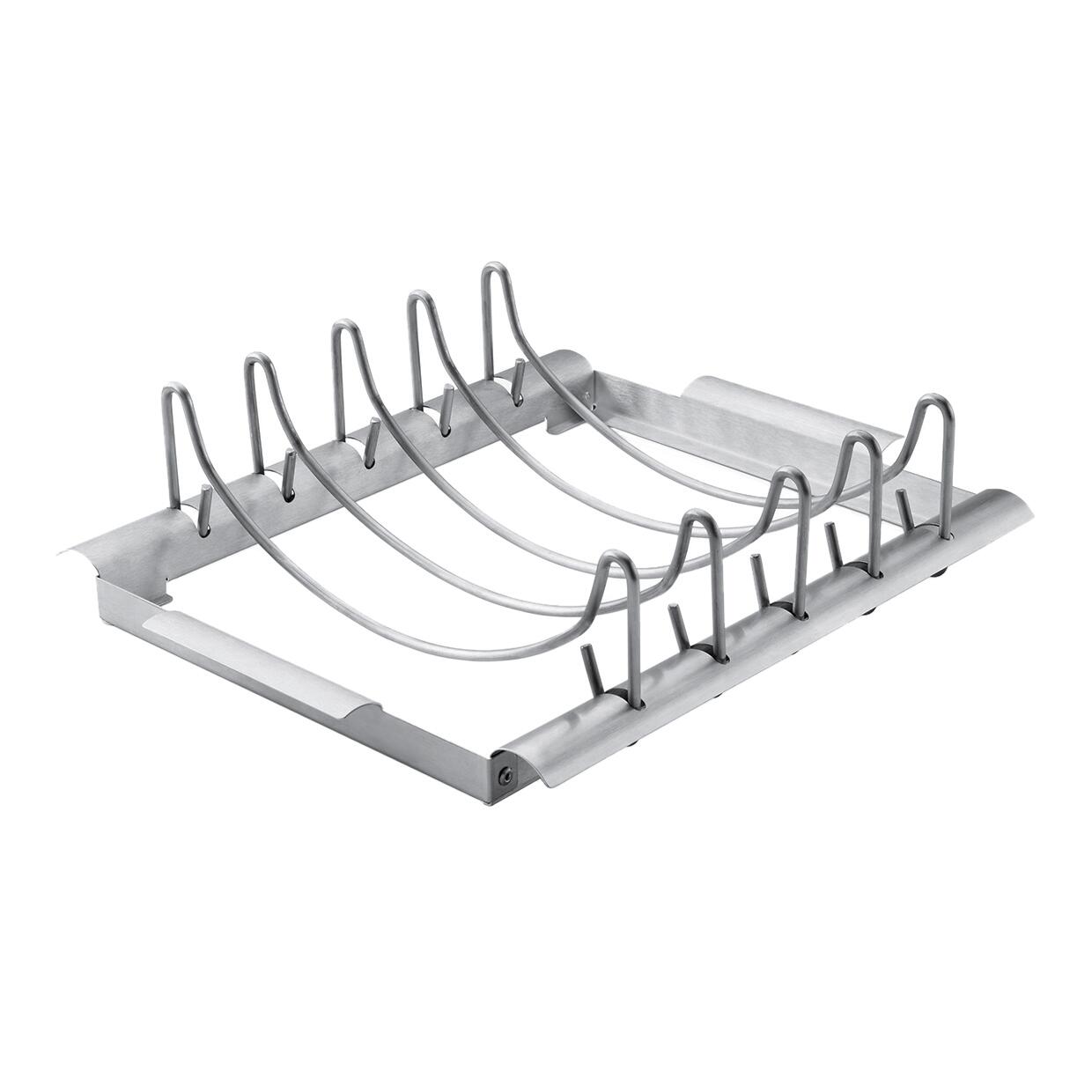 In acciaio inox cm 40 x 31,5. Ideale per la cottura sia di arrosti sia di slabs di costine.. Con supporti staccabili e reversibil
