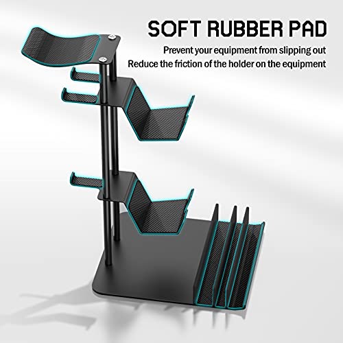 √ 【Ampiamente usato】 Questo supporto per controller di gioco è adatto per il posizionamento verticale di vari game pad, risparmiando molto spazio e possono essere posizionati fino a 2 game pad e 1 cuffia. Puoi mettere il controller di gioco sul supporto e puoi anche appendere le cuffie e altri oggetti. Allo stesso tempo, la scanalatura dell'organizzatore può contenere anche un telefono cellulare.