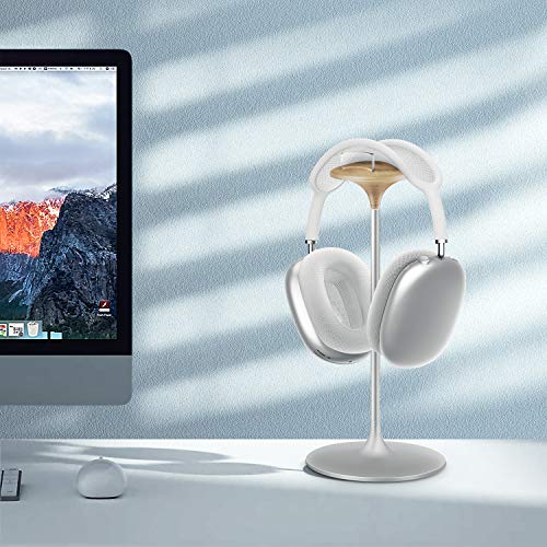 Supporto per cuffie in legno di faggio e alluminio, supporto per cuffie in legno di faggio naturale con base in metallo massiccio per AirPods Max, Beats, Sony, Audio-Technica e altro ancora (argento)