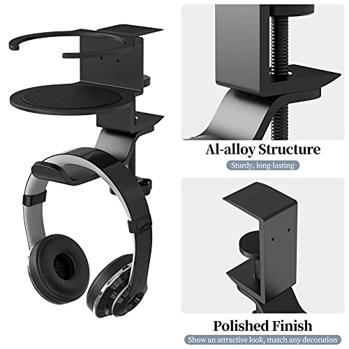 MoKo Supporto per Cuffie, Supporto Cuffie Universale per Cuffie Regolabile a 360°, con Supporto per Tazza, Supporto per Cuffie da Gioco, Antiscivolo, Supporto per Cuffie, Fino 2,5" - Nero