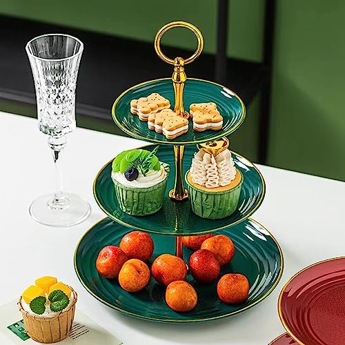 Supporto per cupcake a 3 livelli Wagoodter Supporto per cupcake da dessert in plastica per servire cupcake, frutta, cioccolatini e altro ancora (verde Tondo)