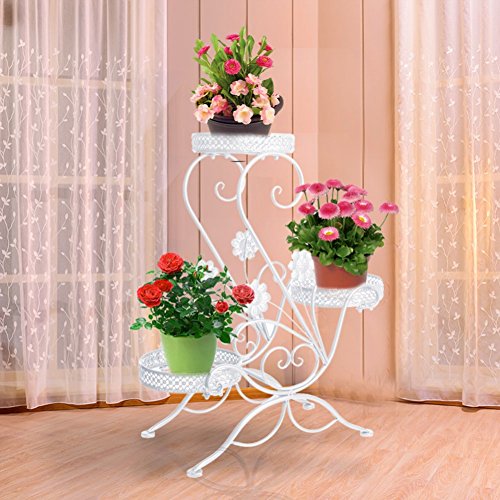 Supporto per piante a 3 livelli di alta qualità, dotato di guide metalliche rotonde di ogni ripiano per evitare che le piante cadano.