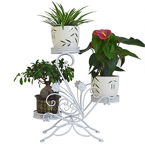 Supporto decorativo classico in metallo a 3 piani per vasi, per giardino e terrazzo, per 3 vasi per piante con moderno design a "S”