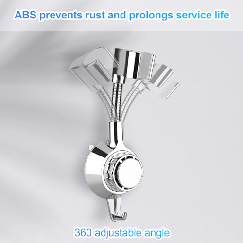 Supporto Doccia con Potente Ventosa, Supporto per Soffione Doccia Senza Foratura, Universale Supporti per Soffione Doccia Regolabile a 360° Argento