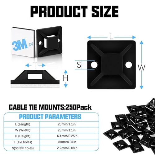 ✅Imballaggio del prodotto e garanzia di qualità: il prodotto contiene 250 fascette autoadesive nere, la dimensione è di 28 mm x 28 mm. La gestione dei cavi offre punti di ancoraggio flessibili per rendere i cavi più ordinati e ordinati, proteggendo lo spazio da ambienti disordinati. Se avete domande sul prodotto, potete c