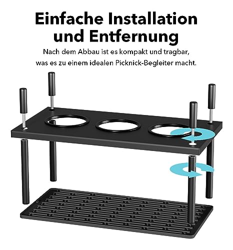 Facile da installare: il montaggio e lo smontaggio dello scolapiatti richiedono solo la rotazione di quattro aste corte, montaggio rapido in 30 secondi! Dopo lo smontaggio, è compatto e portatile, il che lo rende un compagno ideale per il picnic.