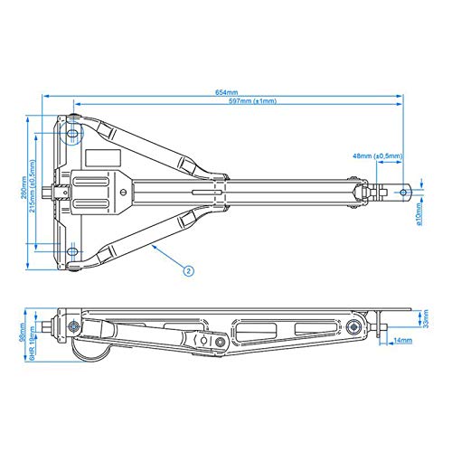 Caratteristiche del prodotto: supporto girevole con una portata totale di 1200 kg (600 kg ciascuno) - Realizzato in acciaio zincato di alta qualità - Supporto girevole filettato, 19 mm esagonale - Dimensioni: 53 x 28 cm - Altezza massima 50 cm - Manovella universale con due fori di fissaggio (foro lungo 15 mm), distanza 21,5 cm
