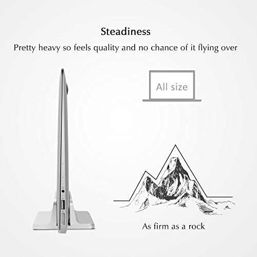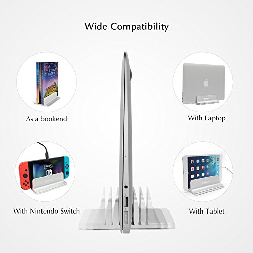 Supporto per laptop verticale BoYata: larghezza regolabile, salvaspazio, storage multifunzione, compatibile per MacBook Pro / Air / HUAWEI MateBook e tutti i laptop, alluminio (Argento)