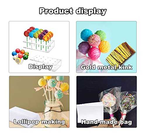 Il pacchetto include: Il pacchetto include un set di cake pop da 2 pezzi e bastoncini per cake pop da 100 pezzi, sacchetti trasparenti da 100 pezzi e fascette metalliche dorate da 100 pezzi. Ogni supporto per lecca-lecca è progettato per 15 lecca-lecca. Puoi semplicemente posizionare saldamente i lecca-lecca sul supporto. Il porta lecca-lecca è facile da montare e smontare.