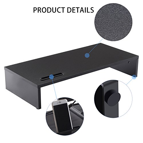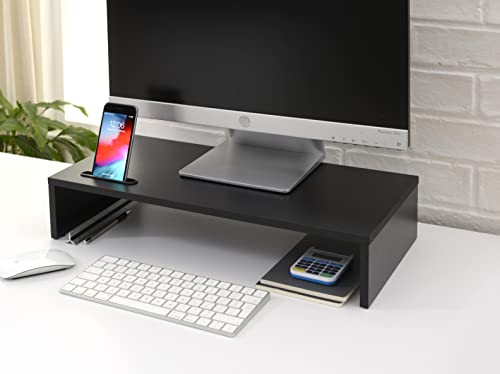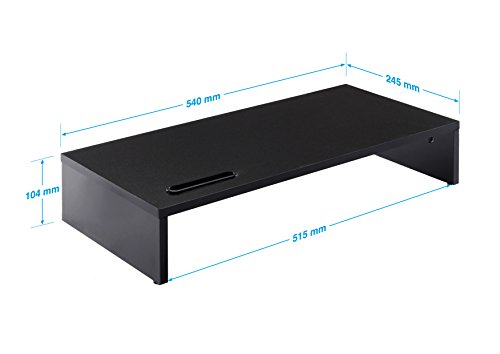 Ttap, supporto nero in legno per monitor singolo, ripiano per computer portatile, TV, display, organiser da scrivania, lunghezza 54 x profondità 25,5 x altezza 10,4 cm