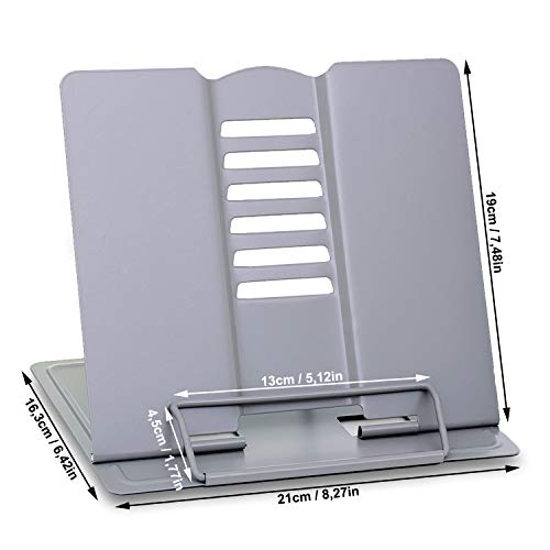 Supporto da lettura, portatile, multifunzione, in metallo, regolabile in 6 livelli, per cucina e ufficio, grigio