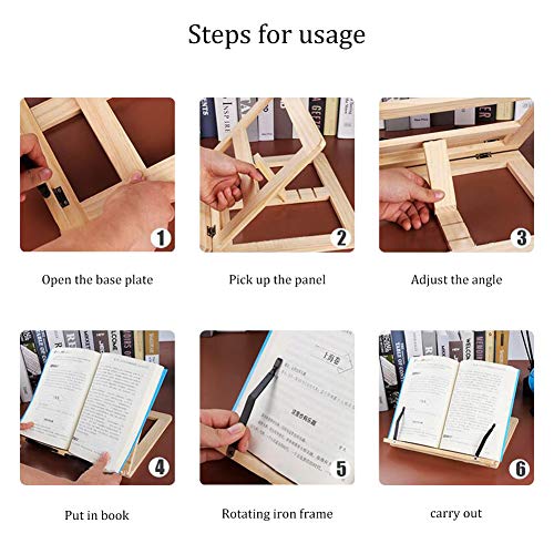 Supporto per Libri, Leggio in Legno, Porta Ipad da Letto, Supporti per Libri da Cucina, Regolabile, Ideale per Libri IPad Tablet -25x32CM (Legno)