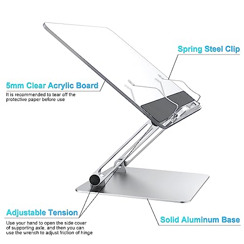 Supporto Libri da lettura, in alluminio e acrilico, Leggio da tavolo per libri regolabile e pieghevole, compatibile anche con laptop e tablet