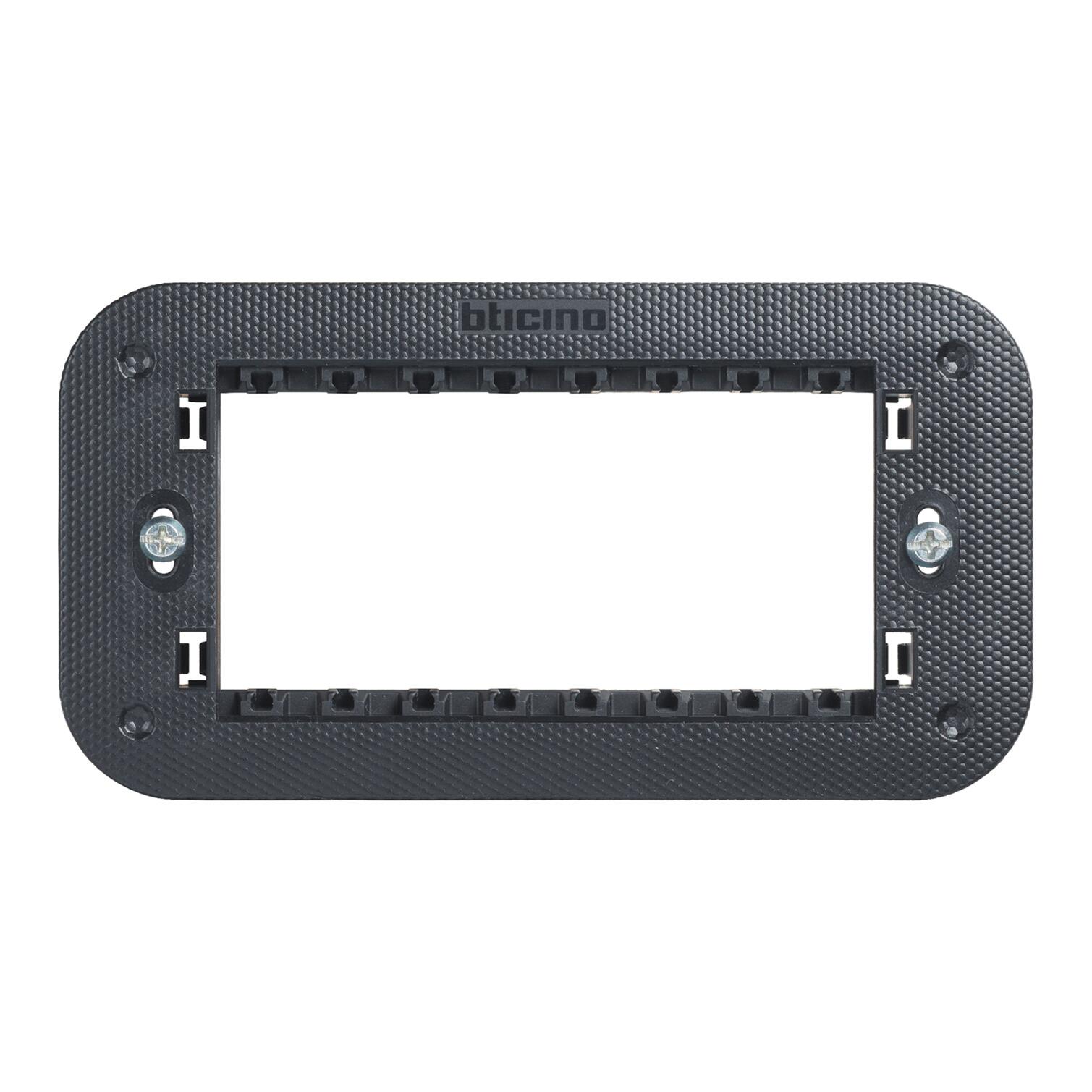 L.NOW. Il supporto Living Now è l'accessorio sul quale si installano i vari dipositivi e la placca 4 moduli L.Now. Costituito di un materiale plastico di nuova generazione che ne aumenta la rigidità