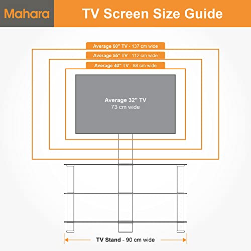 Supporto di stile dal look contemporaneo per la TV, con 3 ripiani in vetro e staffa di montaggio robusta in acciaio