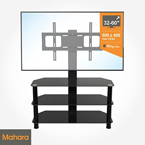 Supporto per TV nero lucido con ripiano con staffa per schermi da 32 a 60”