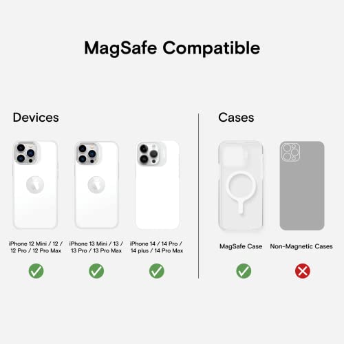 [Compatibilità con MagSafe] Funziona bene con le serie iPhone 12/iPhone 13/iPhone 14, inclusi iPhone 12/mini/Pro/Pro Max, iPhone 13/mini/Pro/Pro Max e iPhone 14/Pro/Pro Max/Plus. Si consiglia di utilizzare le custodie MagSafe, che possono rendere la forza del magnete ancora più forte.