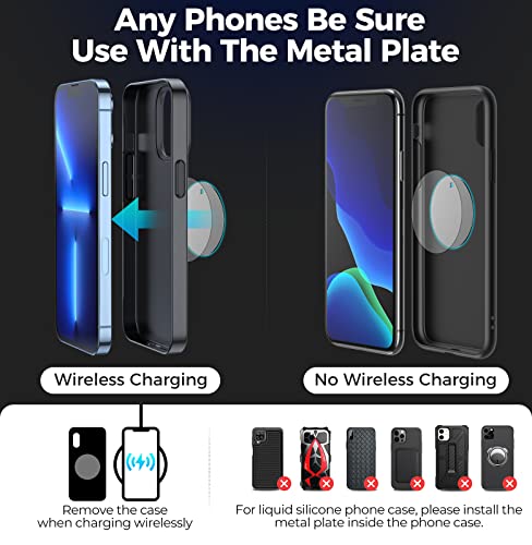 Supporto magnetico universale per auto: non c'è limite alle dimensioni del telefono cellulare. Questo supporto magnetico per auto è compatibile con tutti gli smartphone, iPhone 13/13 Pro/13 Mini/13 Pro Max/12/12 Pro/12/12 Mini/ SE / 11/11 Pro / 11 Pro Max / XS MAX / XS / XR / X / 8 / 8Plus / 7 / 6 6s Plus e Samsung Galaxy Note20/ S20 / S20+ / S20 Ultra 5G / Note10 / Note9 / Note 8 / S10 / S9 / S9 Plus / S8. (Nota: la piastra metallica deve essere attaccata alla parte posteriore della custodia del telefono o del telefono)