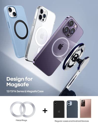 【Ampia adattabilità】 Il supporto per auto magsafe può essere posizionato direttamente su iPhone 12-14 e custodie MagSafe. AVVISO: l'anello di metallo incluso (non interferirà con la ricarica wireless) è necessario se funziona con altri modelli di telefono o custodie non MagSafe. IN AGGIUNTA, il gancio in metallo è più lungo del 50% rispetto a quello ordinario, compatibile con più prese d'aria orizzontali e verticali.