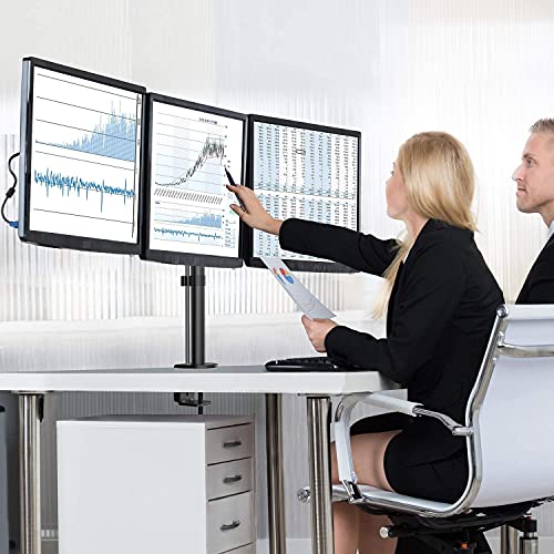 ESTREMAMENTE DUREVOLE E ROBUSTO - Questo supporto è costruito con materiali di alta qualità in modo da poter essere certi che è costruito per durare. La durata e la sicurezza del nostro supporto per monitor tengono gli schermi montati in modo sicuro. Supporta facilmente tre schermi contemporaneamente con ciascun braccio in grado di sostenere fino a 10 kg