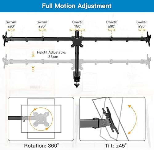 SUPPORTO MONITOR TRIPLICE AD ALTEZZA REGOLABILE - I bracci laterali di montaggio e i piatti inclinano da -15 ° a + 15 °, ruotano da -90 ° a + 90 ° e forniscono un giro di 360 °. Il piatto VESA centrale regolabile fornisce un'inclinazione di 30° e la regolazione in altezza lungo il polo centrale per angoli di visione ideali. Potrebbe regolare il monitor a diverse altezze o angoli diverse per soddisfare al meglio le Sue esigenze