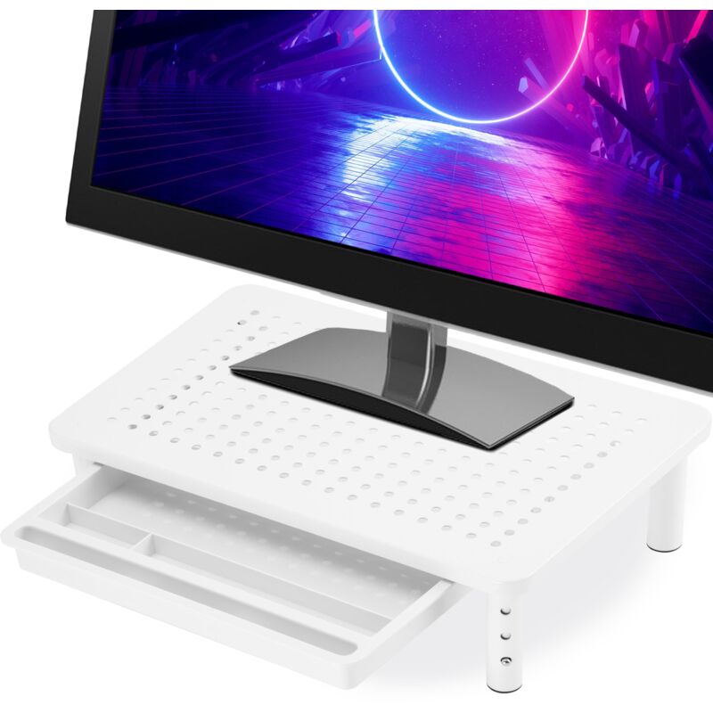 Supporto per monitor per laptop regolabile NANKIN, bianco Colore: bianco Il supporto per monitor Nankin è una soluzione elegante e funzionale che ti aiuterà a ottimizzare il lavoro alla scrivania. Grazie alle sue caratteristiche avanzate, questa base nera fornisce non solo un aspetto estetico, ma anche soluzioni pratiche. Una delle caratteristiche principali di questo supporto per monitor è il suo cassetto. Questo cassetto ti consente di riporre vari piccoli oggetti, come penne, quaderni o altri accessori da ufficio. Inoltre, il cassetto è dotato di un meccanismo che ne permette lo svitamento, così puoi adattarlo comodamente alle tue preferenze ed esigenze. Un'altra caratteristica importante del supporto è la possibilità di regolare l'altezza. Progettato pensando al comfort dell'utente, il supporto dispone di tre livelli di regolazione che consentono di regolare il monitor nella posizione ottimale rispetto ai propri occhi. Ciò ti aiuterà a evitare dolori alla schiena e al collo e ti
