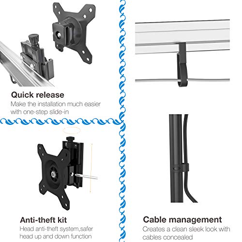 Supporto per monitor per schermi LED LCD da 15 a 49 pollici - Staffa per montaggio su scrivania - Bracci ergonomici di inclinazione di ±15° e rotazione di 360° - VESA: 75/100, fino a 20 kg