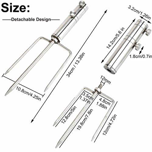 Supporto de Ombrellone Regolabili: la lunghezza totale della staffa dell'ombrello è di 34 cm, la lunghezza del chiodo a terra è di 20 cm, la lunghezza del tubo fisso è di 14,2 cm, il diametro del tubo fisso è di 3,2 cm e il diametro interno è di 2,9 cm. Sul tubo fisso sono presenti 2 manopole regolabili con un diametro di 1,8 cm e un range regolabile di 1,5-2,9 cm.