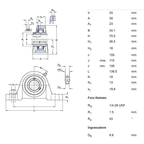 Supporto UCP 205 SKF Originale Ø Diametro 25mm Autoallineante con Cuscinetto UCP205 Codice UCP 205/H