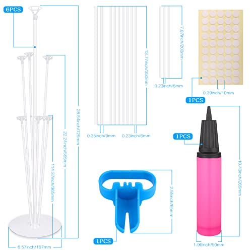 Hejo Kit di Supporto Palloncini, Riutilizzabile da 6 Set (6 Bastoncini per Palloncini+1 Pompa+1 Strumento di Rilegatura+50 nastri biadesivi) Supporto Palloncini da tavolo con Tazza e Base,Festa