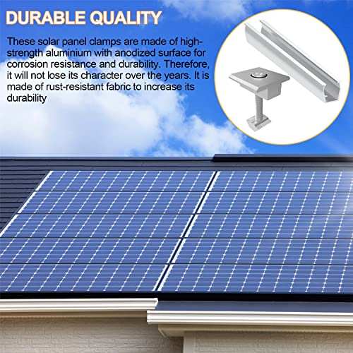 Supporto per Pannello Solare in Alluminio, Kit Staffa di Montaggio per Pannelli Solari, Kit Staffe Fotovoltaico, 4 Guide 200mm + 4 Morsetti Centrali 47mm, per il Collegamento e il Fissaggio su Rotaie