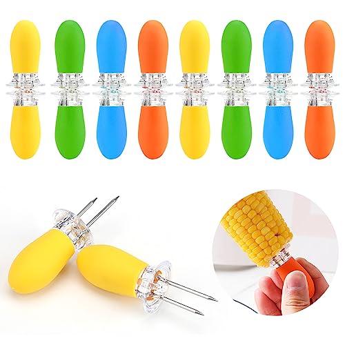 【Il Pacchetto Include】- 16 Pezzi di supporti per pannocchie, 2 coppie gialle, 2 coppie arancioni, 2 coppie verdi, 2 coppie blu, Questo è un set di benefici per proteggere le mani dalle pannocchie di mais calde. Godetevi il mais dolce a vostro piacimento.