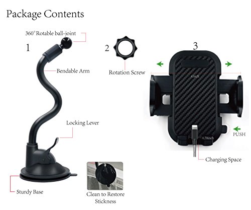 Supporto auto parabrezza a collo d' oca, AP 360 Degre girevole auto culla porta cellulare con ventosa per iPhone 7/6s/6plus/7PLUS riutilizzabile, Galaxy S8/S7/S6/Note, LG, HTC, Huawei e altri